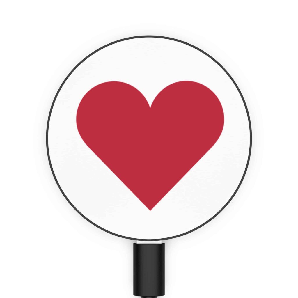 Bold red heart design on a sleek white circular surface.❤️⚪