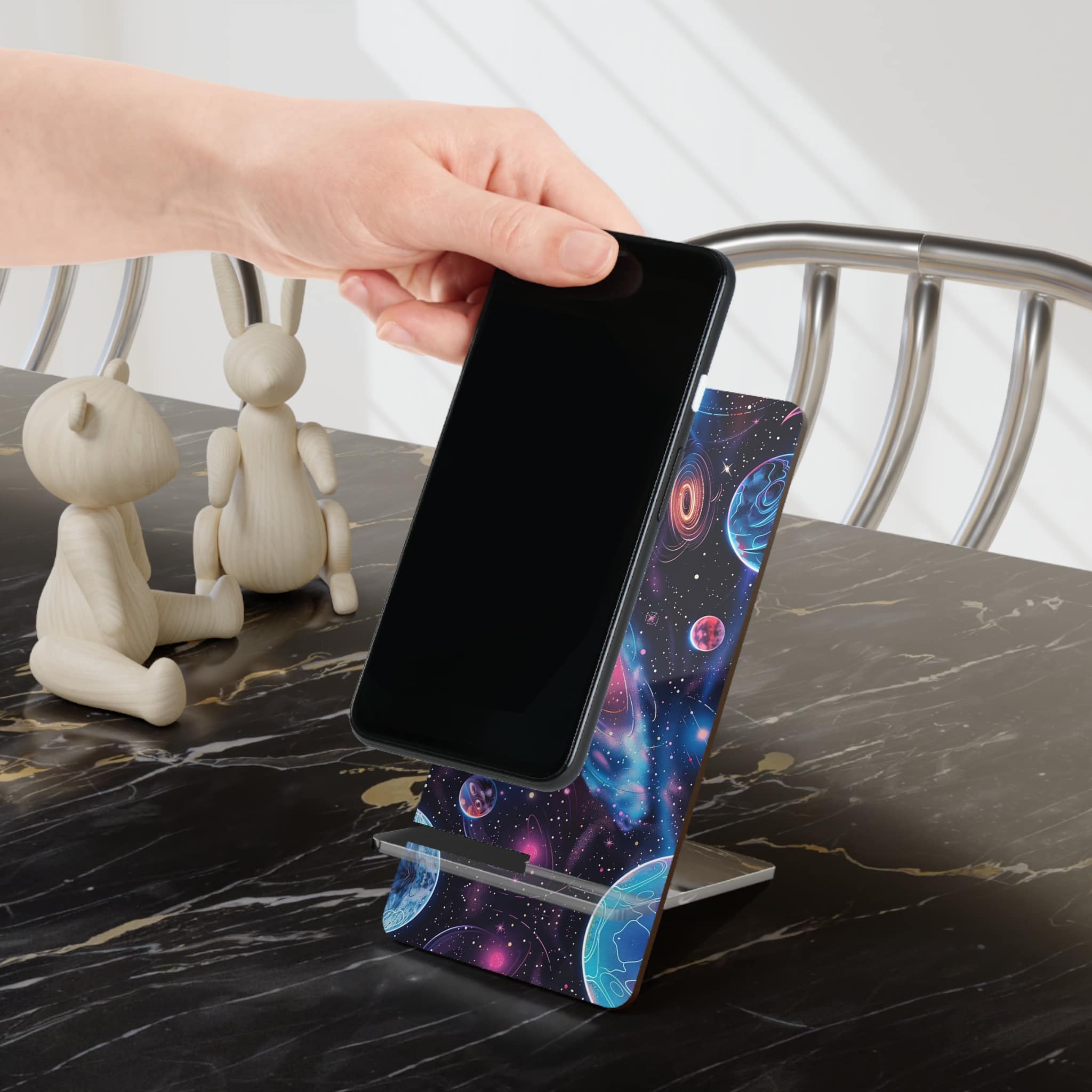 This mobile display stand for smartphones is designed for stability and convenience, making it the perfect accessory for your desk or nightstand. Made from sturdy hardboard with a durable plastic leg, this two-piece stand is easy to set up and take down, offering a wobble-free experience while you enjoy your favorite content.
